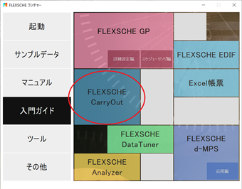 已新增 FLEXSCHE CarryOut 的入门向导。内容旨在让您体验与 FLEXSCHE GP 协同的计划→指示→执行 循环。