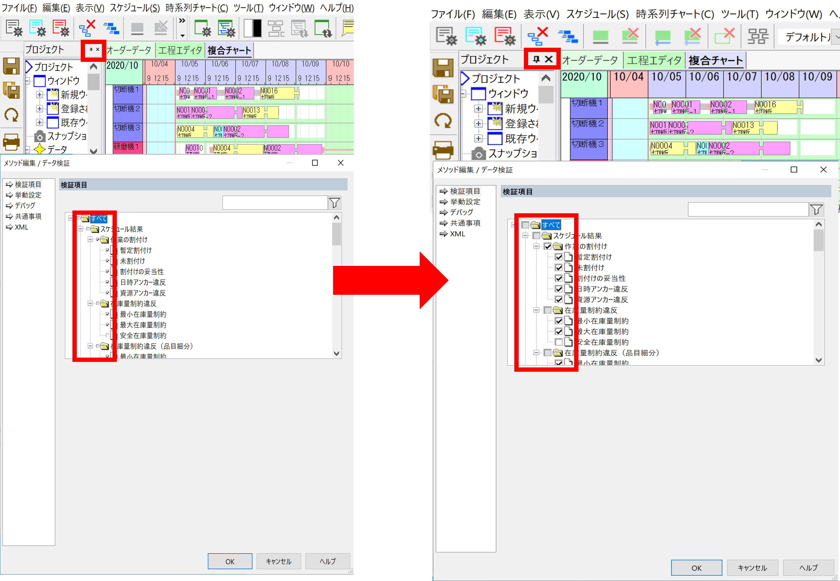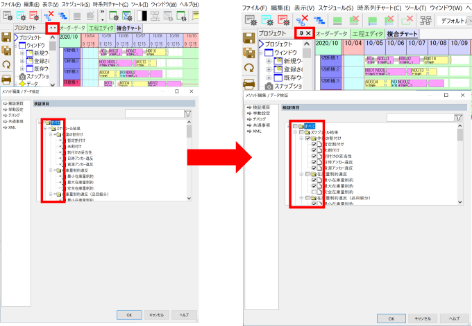 不仅能设置该订单的工作为显示对象,还可将通过分配等关联的其他订单作业纳入显示范围。此外,当存在合并或分支时,现可指定如何展开各作业及相关其他订单的作业。