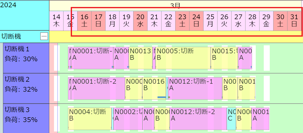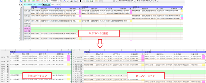 将派工图导出到 Excel 时,以前版本无法再现 FLEXSCHE 上绘制的表格线,但在新版本中表格线也会被显示,视觉上更易辨认。