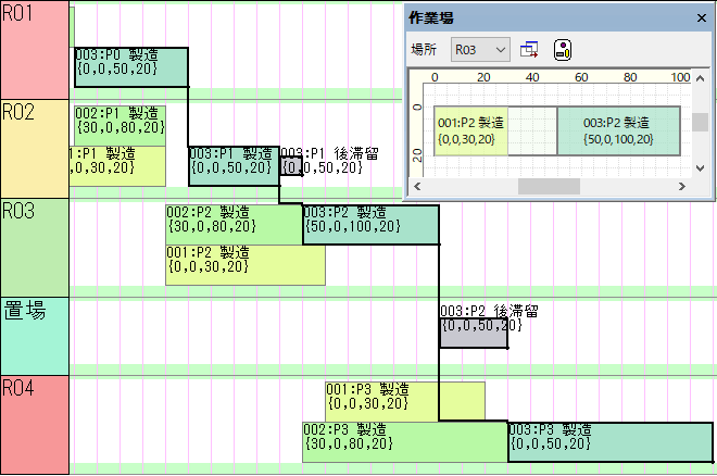 例如,可以轻松制定按前段准备→制造→后段准备等各阶段移动工件并进行配置的计划。